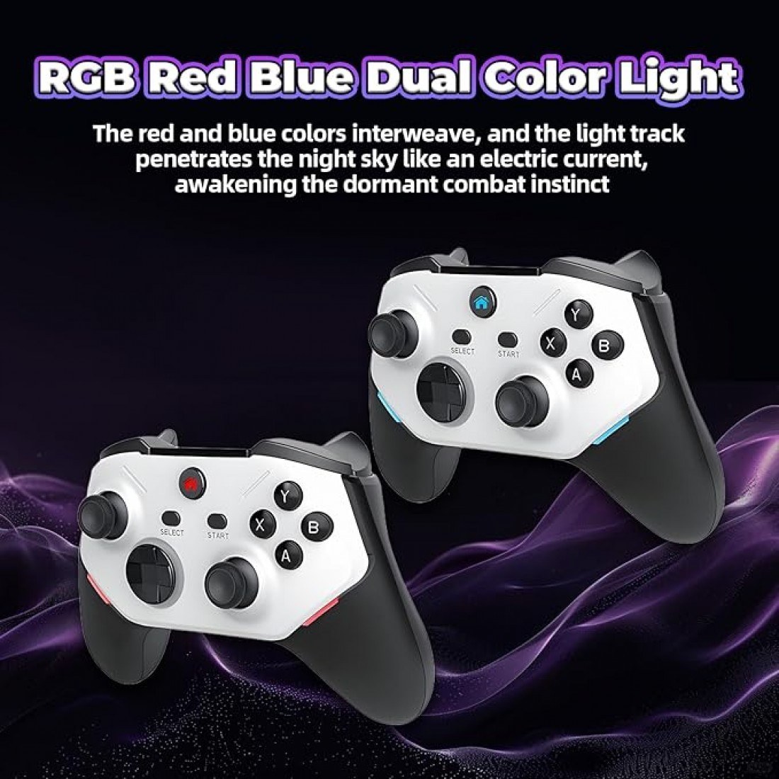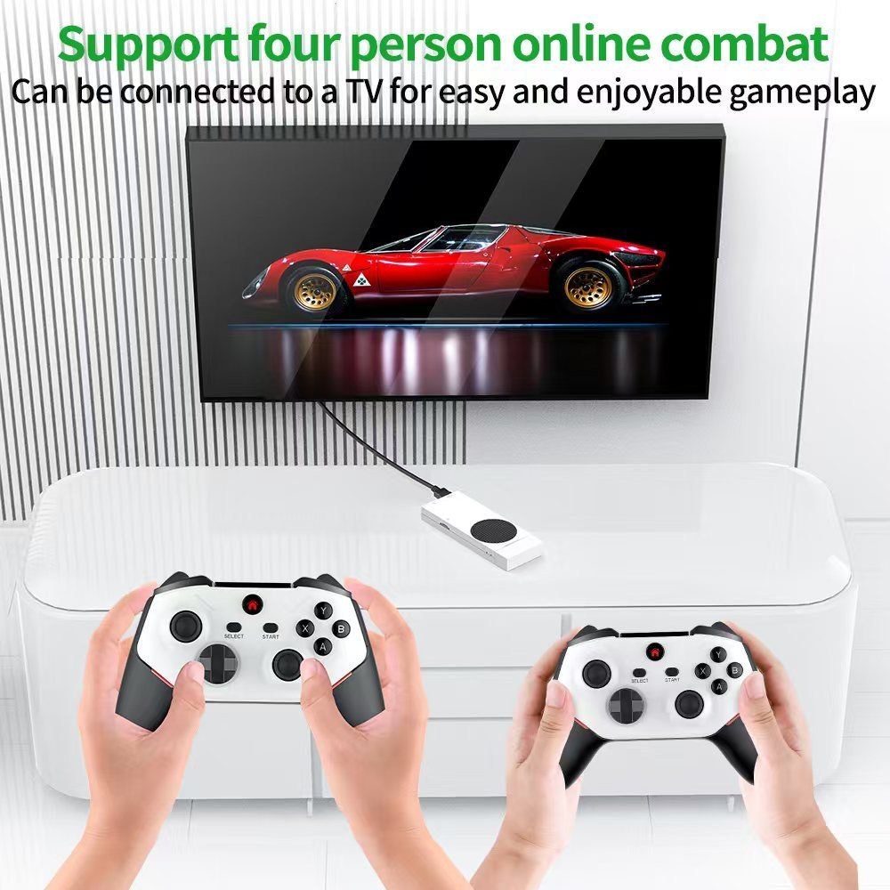 این مجموعه به همراه دو دسته بازی بی‌سیم (وایرلس) با طراحی ارگونومیک و مدرن عرضه می‌شود. این دسته‌ها با داشتن تمام دکمه‌های استاندارد، جوی‌استیک‌های سه‌بعدی دقیق و موتور ویبره، تجربه‌ای کامل و لذت‌بخش از بازی را برای شما فراهم می‌کنند. نورپردازی RGB در این دسته‌ها نیز جلوه‌ای زیبا و هیجان‌انگیز به آن‌ها بخشیده است. با وجود دو دسته، شما می‌توانید از همان لحظه اول، به رقابت و همکاری با دوستان و اعضای خانواده خود در بازی‌های دو نفره بپردازید و خاطرات شیرین گذشته را با هم بازسازی کنید.